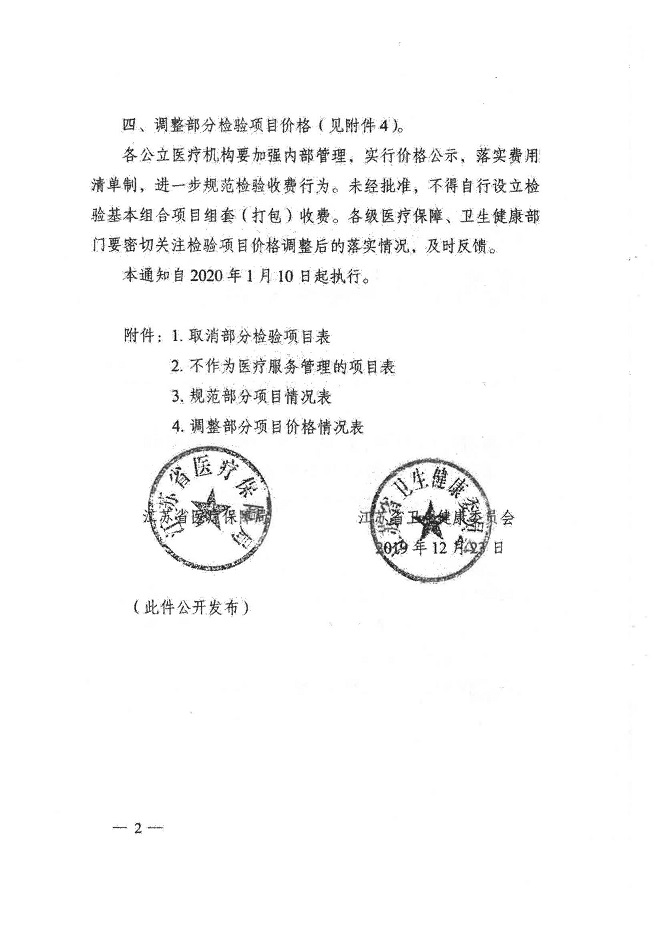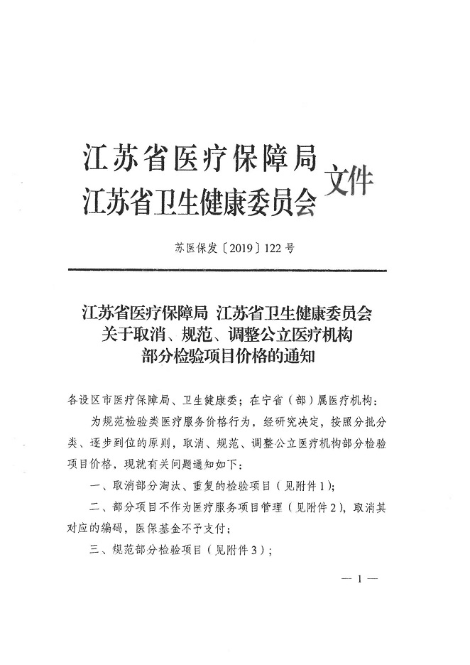 附件:关于转发《江苏省医疗保障局 江苏省卫生健康委员会关于取消、规范、调整公立医疗机构部分检验项目价格的通知》的通知